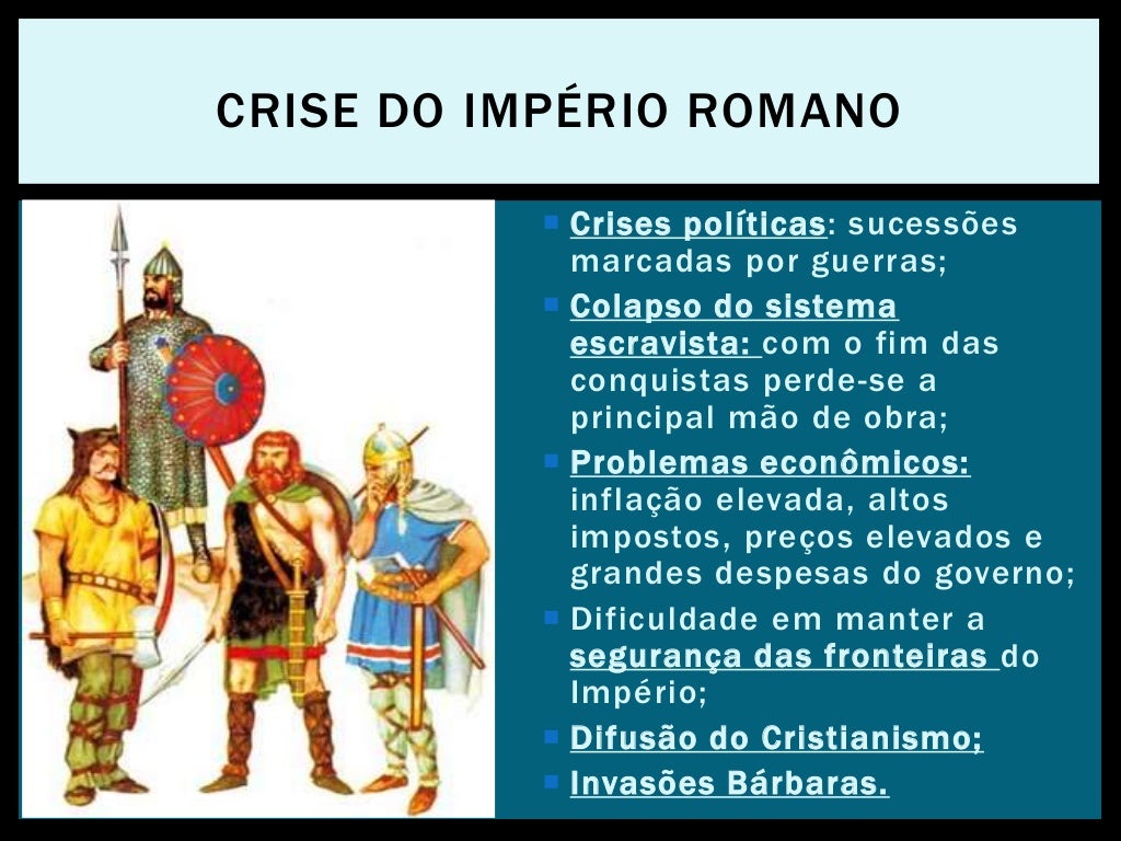 O declínio do Império Romano foi um processo gradual que durou vários séculos; Fatores como corrupção política, crises econômicas e invasões bárbaras contribuíram para o declínio do Império; A queda de Roma em 476 d.C. marcou o fim do Império Romano do Ocidente; O Império Romano do Oriente, também conhecido como Império.