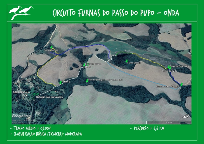 CIRCUITO AUTOGUIADO FURNAS DO PASSO DO PUPO . Caminhada em forma de circuito (ida e volta por caminhos diferentes), com 6 km de extensão e dificuldade leve superior.Esse roteiro passa pelas 4 Furnas do Passo do Pupo (Furnas Gêmeas, Furna do Anfiteatro e Furna Grande). Após a liberação na recepção do Refúgio das Curucacas, inicia a.