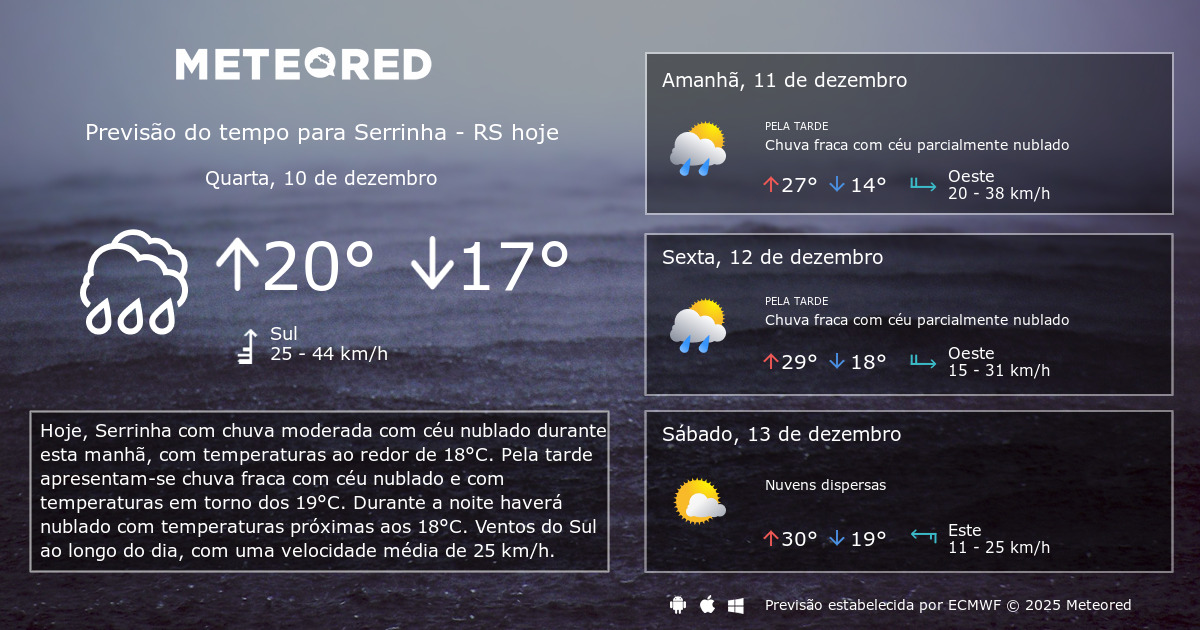 Previsão do tempo Serrinha RS. 14 dias Meteored