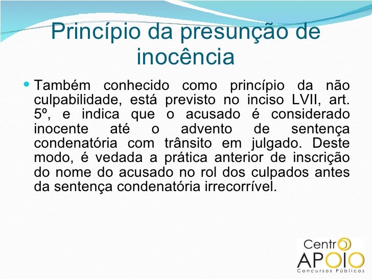 Alcance e significado do princípio constitucional da presunção de inocência. Desde a Revolução Francesa, em 1789, tornou-se expresso, através da Declaração dos Direitos do Homem e do.