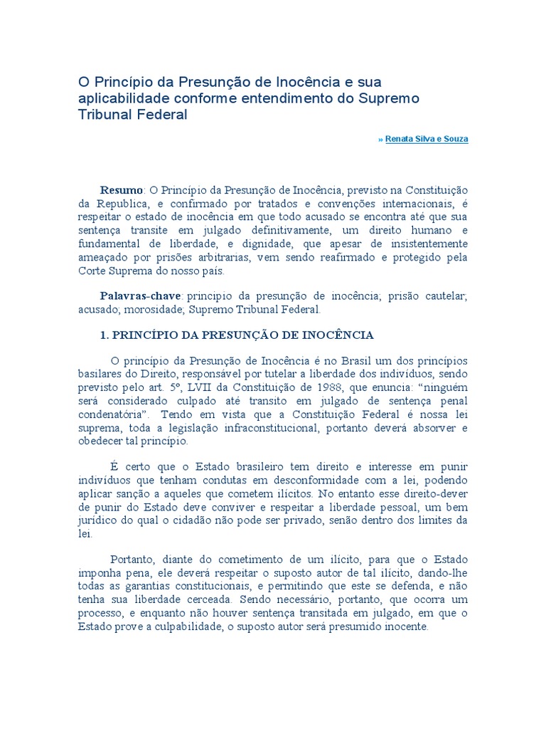 O Princípio Da Presunção de Inocência e Sua Aplicabilidade Conforme Entendimento Do Supremo