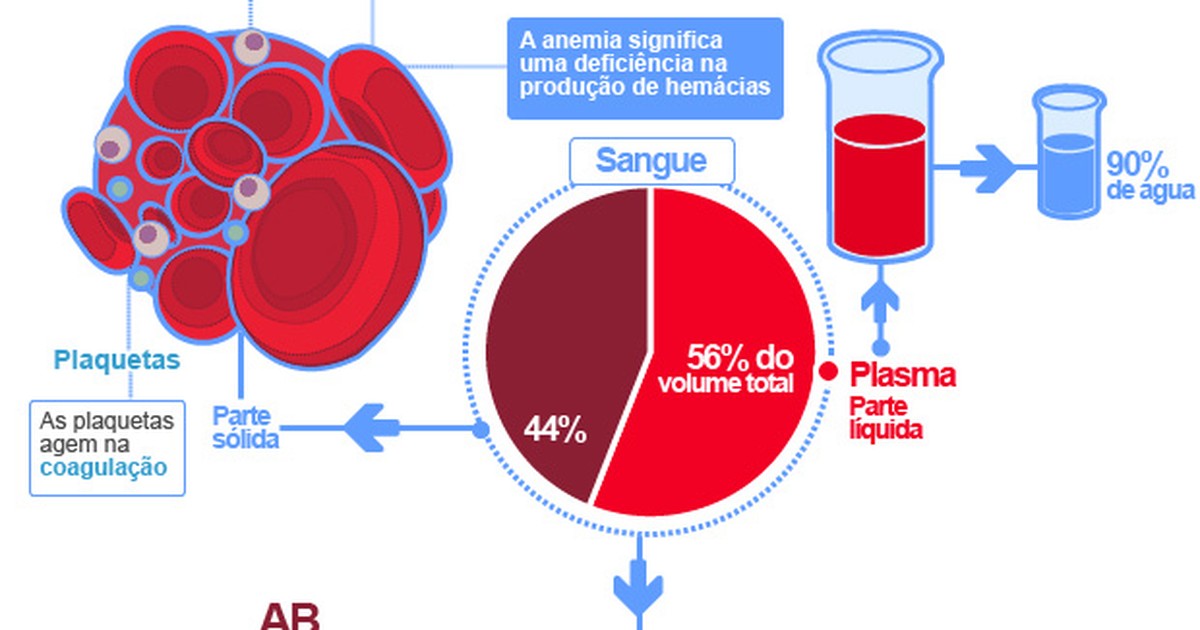 November 2021. O sangue é tecido vivo e no corpo de um adulto circulam, em média, 5 litros, variando de acordo com o peso. Compõe-se de uma parte líquida (plasma), constituída por água, sais, vitaminas, e fatores de coagulação, na qual estão misturadas as partes sólidas: hemácias, leucócitos e plaquetas.