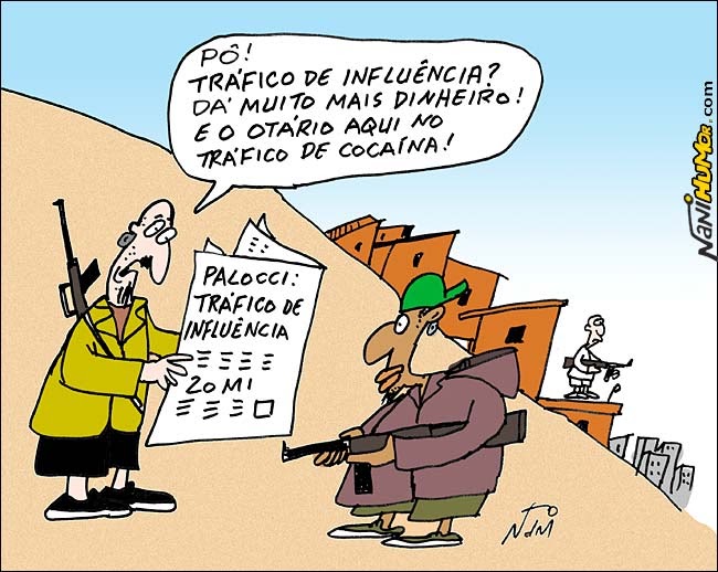 O tráfico de influência está definido no artigo 332: "Solicitar, exigir, cobrar ou obter, para si ou para outrem, vantagem ou promessa de vantagem, a pretexto de influir em ato praticado por funcionário público no exercício da função". Nesse crime, a pena é de "reclusão de dois a cinco anos, e multa".
